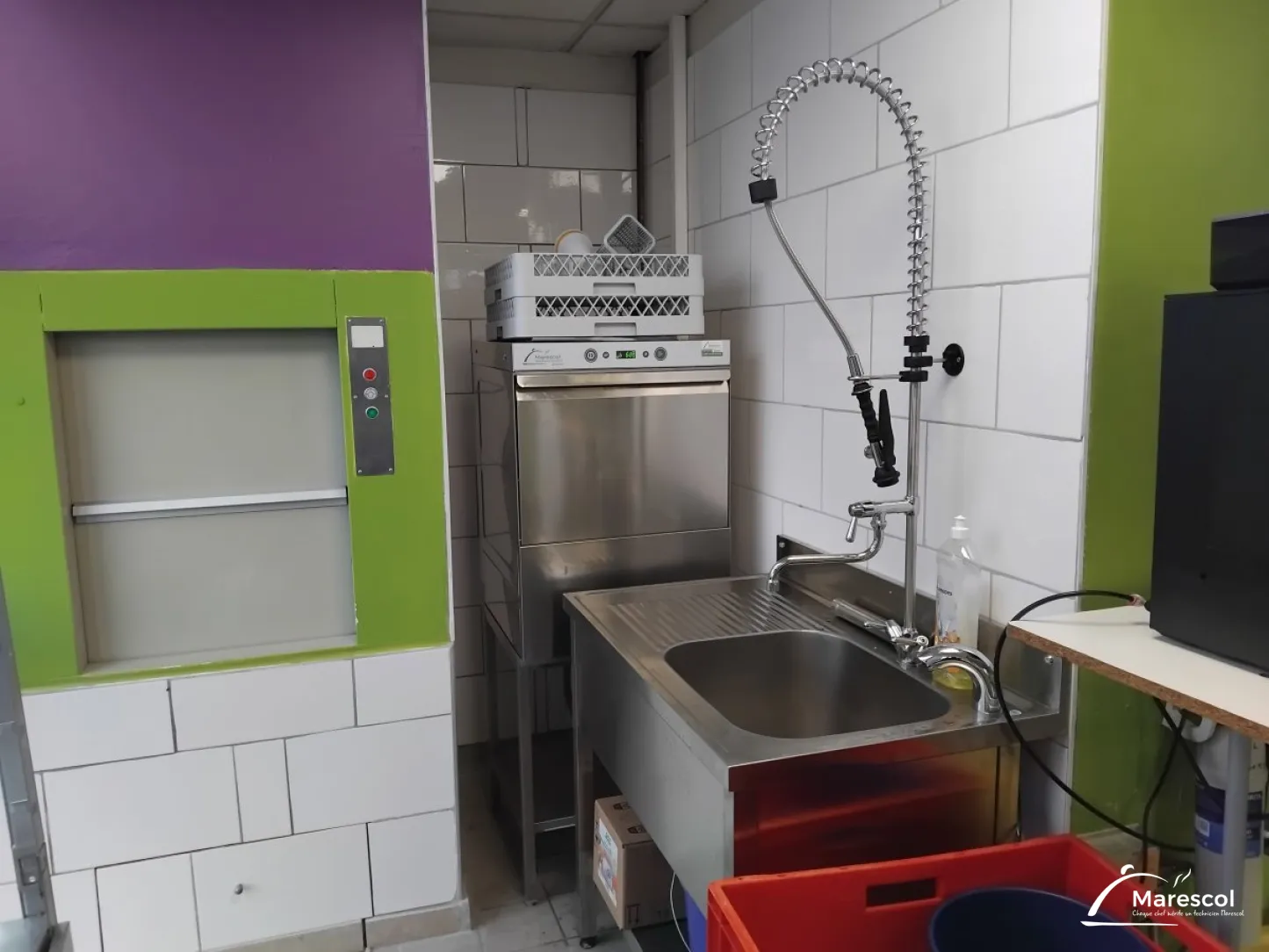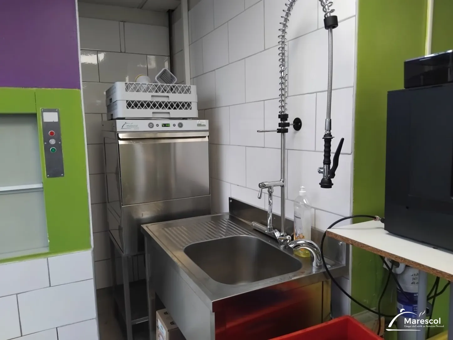 - Installation d'un lave vaisselle MARESCOL haut de gamme conçu pour répondre aux exigences les plus strictes : cycles de lavage optimisés pour des résultats impeccables, cuve emboutie sans arête, filtres intégrés pleine largeur, bras de lavage performants, interfaces électroniques intuitives, programmes adaptés à tous les usages (verres, vaisselle très sale, lavage continu…) et fonctionnement silencieux.